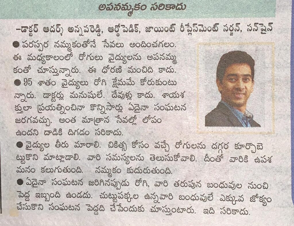 Dr. Adarsh News Article – Andhra Jyothi News – 17th Jan, 2020